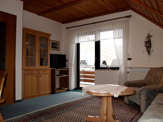 (Doppelzimmer, Wohnzimmer mit Schlafcouch und Essecke, Balkon, SAT-TV, Kochküche, Dusche/WC)